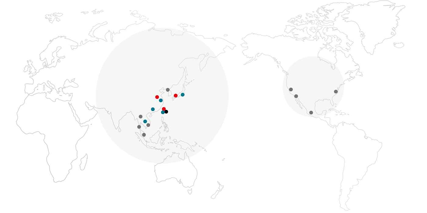 | 东南亚 | 大陆 | 中国台湾 | 韩国 | 日本 | 美国 | 欧洲 | |